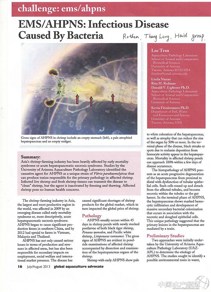原文作者:LocTran、D.V.Lightner等 翻譯:中國水產頻道通訊員 胡路怡