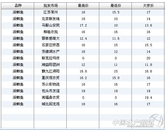 (中國水產頻道水產價格信息共享Q群:245296163,歡迎提供各種水產品一線價格信息!)