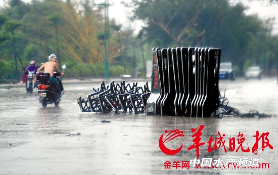 “溫比亞”登陸湛江后,一個小區的伸縮大門被風吹到了街道中間 郎樹臣攝