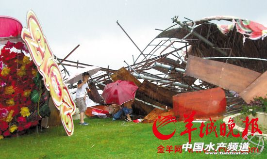 中國水產頻道報道,據羊城晚報訊,7月2日上午,一股龍卷風突襲佛山市三水區西南街魯村村委石潭村附近地域,造成多家養殖戶不同程度受損,1人受輕傷。