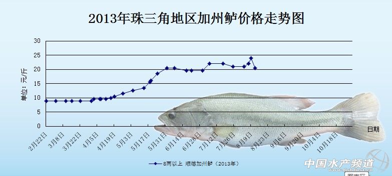 加州鱸 日期 地區 規格 價格 單位 7月18日 南海 8 兩-1斤半 25 元/斤 7月25日 佛山 8 兩-1斤半 21 元/斤 7月26日 浙江 18 元/斤 8月3日 佛山 8 兩-1斤半 21 元/斤 8月7日 佛山 8 兩-1斤半 22 元/斤 8月9日 廣東順德 8兩以上 24 元/斤 8月9日 廣東順德 統級 22 元/斤 8月12日 佛山 8 兩-1斤半 20.5 元/斤 【關鍵字】:加州鱸 塘頭價 珠三角 中國水產頻道(fuqitext.com)獨家報道,轉載請說明出處,違者追究法律責任, 謝謝合作。 | ||||||||||||||||||||||||||||||||||||||||||||||||||