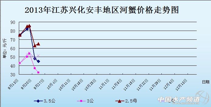 中國水產頻道獨家報道,據網友提供消息,9月23日江蘇興化安豐河蟹價格行情如下: