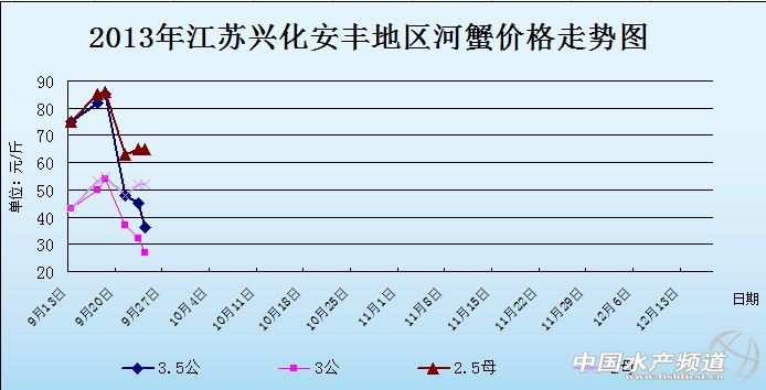 中國水產(chǎn)頻道獨(dú)家報道,據(jù)網(wǎng)友提供消息,9月24日江蘇興化安豐河蟹價格行情如下: