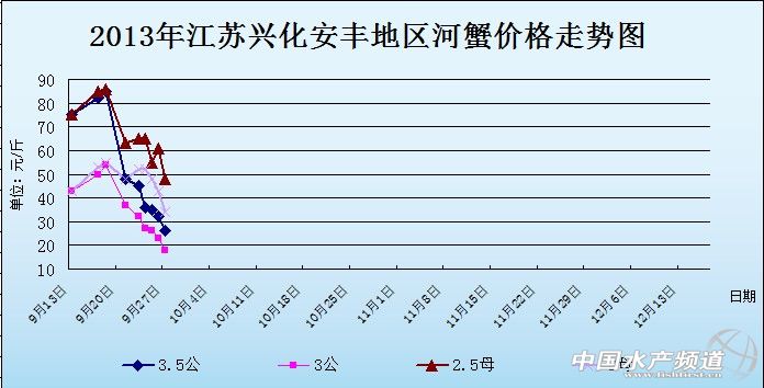 中國水產(chǎn)頻道獨家報道,據(jù)網(wǎng)友提供消息,9月27日江蘇興化安豐河蟹價格行情如下: