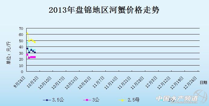 中國水產頻道獨家報道,據網友提供消息,9月30日遼寧盤錦河蟹價格行情如下: