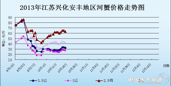 中國水產(chǎn)頻道獨家報道,據(jù)網(wǎng)友提供消息,10月16日江蘇興化安豐河蟹價格行情如下: