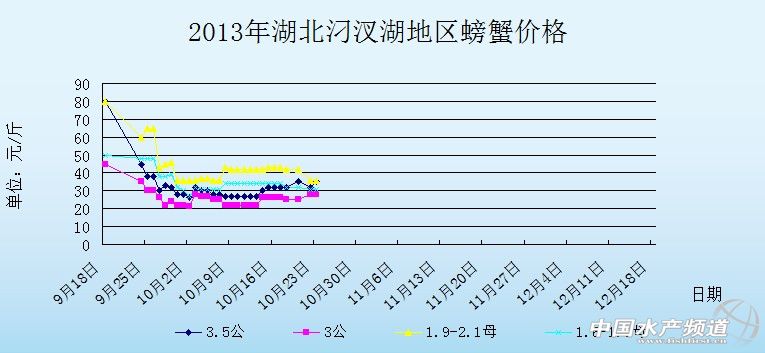 中國水產頻道獨家報道,據網友提供消息,10月23日湖北汈汊湖主產區河蟹價格行情如下: