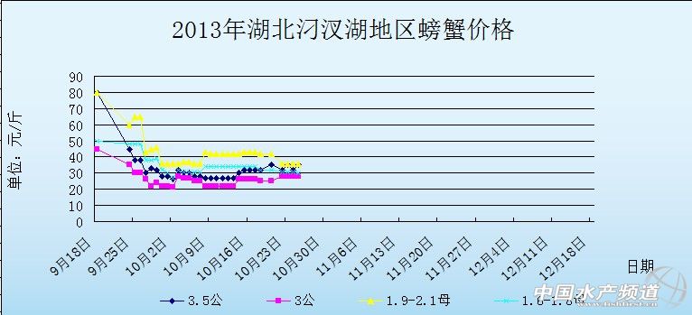 中國(guó)水產(chǎn)頻道獨(dú)家報(bào)道,據(jù)網(wǎng)友提供消息,10月25日湖北汈汊湖主產(chǎn)區(qū)河蟹價(jià)格行情如下: