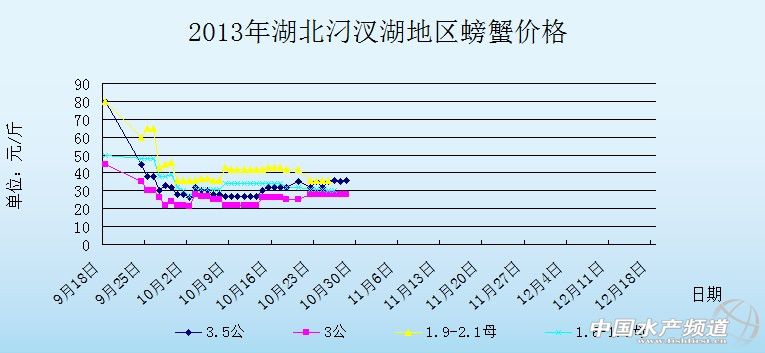中國水產頻道獨家報道,據網友提供消息,10月28日湖北汈汊湖主產區河蟹價格行情如下:
