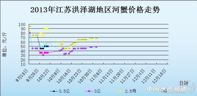 中國水產頻道獨家報道,據網友提供消息,11月1日江蘇洪澤湖河蟹價格行情如下: