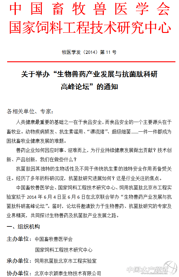 關于舉辦“生物獸藥產業發展與抗菌肽科研 高峰論壇”的通知