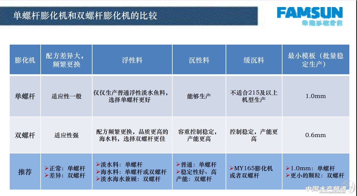 文/圖 中國(guó)水產(chǎn)頻道 蔡章潔 中國(guó)水產(chǎn)頻道原創(chuàng)報(bào)道,經(jīng)過2010年-2012年膨化飼料的“瘋狂上線”,水產(chǎn)膨化料也成為飼料行業(yè)發(fā)展的趨勢(shì)。海水魚類膨化料的市場(chǎng)應(yīng)用效果得到普遍的認(rèn)可,使得水產(chǎn)膨化飼料得到快速增長(zhǎng)。而淡水魚膨化料的工藝、市場(chǎng)也在逐漸攻關(guān)。6月16日,2014牧羊-粵海MY215膨化機(jī)觀摩研討會(huì)在湛江嘉瑞禾酒店舉辦。珠江水產(chǎn)研究所謝駿研究員、湛江市海榮飼料有限公司總經(jīng)理鄭會(huì)方、牧羊有限公司總工程師李秀剛、牧羊有限公司研究院主任馬亮等報(bào)告嘉賓,以及海南裕泰科技飼料有限公司總經(jīng)理陳剛、廣西遼大飼料集團(tuán)有限公司副總經(jīng)理?xiàng)钪緩V等多家企業(yè)代表、采購經(jīng)理參會(huì)。會(huì)上,廣東粵海飼料集團(tuán)副總裁韓樹林、牧羊有限公司國(guó)內(nèi)營(yíng)銷與服務(wù)中心(中國(guó)區(qū))總裁劉春海兩位領(lǐng)導(dǎo)為大會(huì)致開幕詞,嘉賓針對(duì)淡水魚發(fā)展、膨化飼料生產(chǎn)工藝等方面進(jìn)行了探討,并組織到海榮飼料生產(chǎn)車間觀摩膨化機(jī)在生產(chǎn)淡水魚膨化料方面的產(chǎn)能與品質(zhì)。 “總體今年淡水魚養(yǎng)殖行業(yè)趨好,不會(huì)悲觀。關(guān)鍵是養(yǎng)殖戶要有市場(chǎng)大局觀,需要對(duì)整個(gè)行情有更多關(guān)注,錯(cuò)開放苗高峰,細(xì)化管理。”鄭會(huì)方對(duì)2014年羅非魚、草魚等淡水魚行情表示謹(jǐn)慎樂觀態(tài)度,據(jù)了解,目前海榮的羅非魚料目前全部是上膨化線,草魚料則兼有顆粒料和膨化料。 羅非魚、草魚等淡水養(yǎng)殖魚類因其養(yǎng)殖量大、飼料容量大,將是水產(chǎn)膨化飼料的新增市場(chǎng)空間。據(jù)統(tǒng)計(jì),2012年全國(guó)草魚養(yǎng)殖產(chǎn)量為478.17萬噸,估計(jì)2013年產(chǎn)量為505萬噸。2012年全國(guó)鯽魚養(yǎng)殖產(chǎn)量為245.05萬噸,估計(jì)2013年產(chǎn)量為258萬噸。2013年華南地區(qū)羅非魚料約為116萬噸,其中廣東市場(chǎng)64萬噸,廣西市場(chǎng)15萬噸,海南市場(chǎng)37萬噸。廣東地區(qū)羅非魚膨化料占有率已經(jīng)達(dá)到70%以上,草魚依舊以沉性顆粒料為主,但是膨化料也依舊在擴(kuò)大使用量。而海南羅非魚膨化料更是由2012年的3-5萬噸,在2013年快速增長(zhǎng)值13萬噸。 在會(huì)上,珠江水產(chǎn)研究所謝駿研究員更談到,國(guó)家漁業(yè)方針居首的理念已經(jīng)由“以養(yǎng)為主”轉(zhuǎn)變?yōu)椤吧鷳B(tài)優(yōu)先”,這也說明產(chǎn)業(yè)呼喚優(yōu)質(zhì)環(huán)保飼料。而膨化飼料因其消化率高、耐水性好、污染少等因素而備受推崇,更成為飼料行業(yè)的趨勢(shì)。 那么企業(yè)要上膨化線該如何選擇呢? 牧羊馬亮主任列舉了單螺桿膨化機(jī)和雙螺桿膨化機(jī)的比較供參考。 牧羊李秀剛總工程師分享了淡水魚膨化飼料質(zhì)量標(biāo)準(zhǔn)總結(jié)。 更多詳細(xì)內(nèi)容,敬請(qǐng)關(guān)注中國(guó)水產(chǎn)頻道圖文報(bào)道:2014牧羊-粵海MY215膨化機(jī)觀摩研討會(huì) 【關(guān)鍵字】:膨化飼料 淡水魚料 水產(chǎn)養(yǎng)殖 |