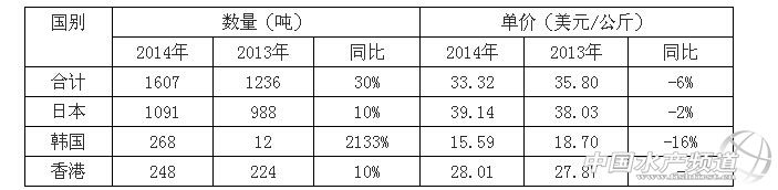 中國水產頻道報道,據中國鰻魚網訊,據中國海關統計,4月份中國大陸出口活鰻446噸,比上月的388噸增加14%,比2013年同期的348噸增加28%;創匯1507萬美元,比去年同期的1196萬美元增加26%;平均出口單價33.75美元/公斤,比去年同期的34.33美元/公斤下降1%。 2014年度1-4月我國累計出口活鰻1607噸,比去年同期的1236噸增加30%;平均出口單價33.32美元/公斤,比去年同期的35.80美元/公斤下降6%;創匯5355萬美元,比上年度的4425萬美元增加21%。 1-4月我國活鰻出口數量 備注:以上統計根據計數規則,出口量均四舍五入到噸,創匯金額均四舍五入到萬美元。 |