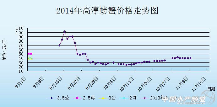 中國水產(chǎn)頻道獨(dú)家報(bào)道,據(jù)網(wǎng)友提供消息,2014年9月2日江蘇高淳河蟹價(jià)格行情如下: