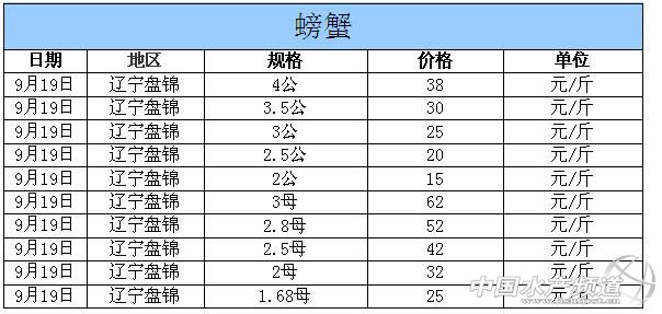 中國水產頻道獨家報道,據網友提供消息,2014年9月19日遼寧盤錦河蟹價格行情如下: 遼寧盤錦河蟹價格信息由盤錦市雙臺子區東風市場華陽河蟹行(電話:18040020068;15942702021;0427~6616465)提供,由于價格波動及訂貨量影響,以上價格為收購價格,實際價格請聯系電話。 |