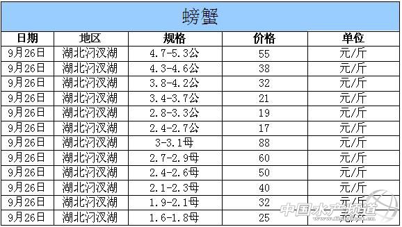 中國水產頻道獨家報道,據網友提供消息,2014年9月26日湖北汈汊湖主產區河蟹價格行情如下: 湖北漢川汈汊湖河蟹信息由湖北漢川天歌螃蟹養殖專業合作社曾先生(13508632620)提供,由于價格波動及訂貨量影響,以上價格為行情價格,實際價格請聯系電話。 |
