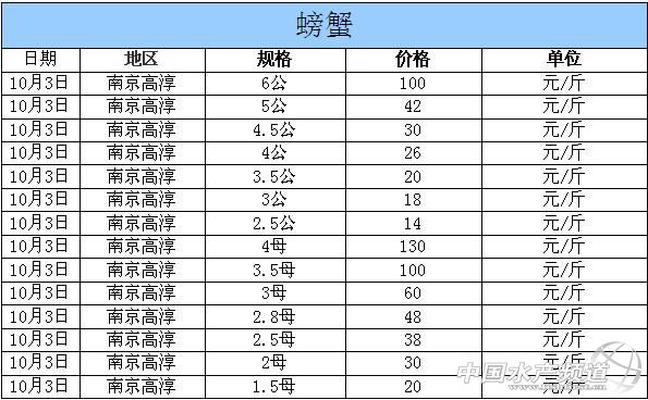 中國(guó)水產(chǎn)頻道獨(dú)家報(bào)道,據(jù)網(wǎng)友提供消息,2014年10月3日江蘇高淳河蟹價(jià)格行情如下: 南京高淳河蟹價(jià)格信息由南京康旭科技有限公司沈先生(電話:13770896772,網(wǎng)站:http://shop110368651.taobao.com)提供,由于價(jià)格波動(dòng)及訂貨量影響,以上價(jià)格為收購(gòu)價(jià)格,實(shí)際價(jià)格請(qǐng)聯(lián)系電話。 【關(guān)鍵字】:河蟹價(jià)格 河蟹行情 河蟹塘頭價(jià) |