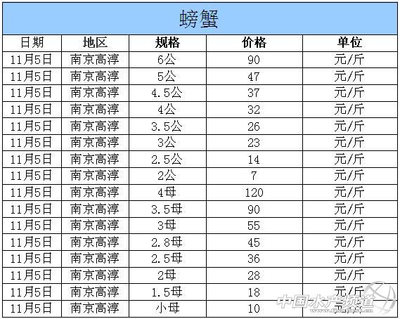 中國水產頻道獨家報道,據網友提供消息,2014年11月5日江蘇高淳河蟹價格行情如下: