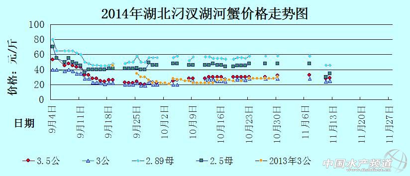 中國水產(chǎn)頻道獨家報道,據(jù)網(wǎng)友提供消息,2014年11月12日湖北汈汊湖主產(chǎn)區(qū)河蟹價格行情如下: 湖北漢川汈汊湖河蟹信息由湖北漢川天歌螃蟹養(yǎng)殖專業(yè)合作社曾先生(13508632620)提供,由于價格波動及訂貨量影響,以上價格為行情價格,實際價格請聯(lián)系電話。 【關(guān)鍵字】:河蟹價格 河蟹行情 河蟹塘頭價 |