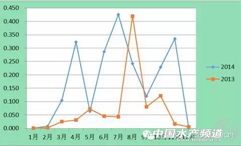 2014年繼續組織全省水產技術推廣系統,在11個市、71個縣(市、區)建立369個養殖監測點,并將21個漁藥店作為測報點補充,對21個水產養殖品種進行了病害監測,監測面積為池塘/圍塘66512畝,大棚3455.7畝,灘涂2370畝,海水網箱620630m3,淡水網箱3000m2,流水養殖110000m2,溫室70650m2。同時開展了7個主要養殖品種重大疫病監控與流行病學調查和蝦苗疫病普查等工作。現將2014年我省水產養殖病害情況分析如下: 1、各類疾病總數與2013年基本持平 2014年21個監測品種全部發病,共監測到各類病害71種,包括病毒性疾病6種、細菌性疾病23種、真菌性疾病1種、寄生蟲性疾病6種、其它病害26種、不明病因9種;病害總數與2013年基本持平。 與去年相比,發病品種增加2種,病害種類減少1種,其中生物源性疾病和2013年持平,環境不適、擦傷、臺風等其他性質病害比2013年減少了4種,不明病因的病害比2013年增加了3種。 2、病害流行情況與往年相似 2014年全省水產養殖品種發病情況同往年一致,與氣溫的變化呈正相關,發病時間主要集中在3月~10月,其中又以5月~9月為發病高峰期(圖1),總體上病害種類隨著氣溫、水溫的增高而增加。這與高溫時節病原生物大量繁殖、養殖生物生長旺盛導致殘餌及排泄物增多、天氣多變、水質易惡化等多種因素有關。其中3月份、5月份~7月份、9月份月病害數比2013年有所增加,而8月份因沒有2013年同期極端高溫以及“潭美”臺風帶來的狂風暴雨影響,養殖動物發病種類相對減少。 圖1 浙江省水產養殖月病害數比較圖(種) 3、發病程度仍屬較重年份 盡管2014年未出現上年的持續高溫、超強臺風、冰雪寒凍等惡劣氣候條件,但2014年早期的持續低溫多雨、8月罕見的多雨寡照涼爽天氣,使2014年的總體發病率、死亡率不低。2014年月平均發病率4.03%、平均死亡率0.18%(圖2、圖3),測報點月平均經濟損失171.08萬元,與2013年相比,發病率、死亡率均有所上升(去年同期為4.00%、0.07%),但由于多數死亡品種的規格較小、經濟價值相對較低,月均經濟損失有所減少,約為去年同期的87%,及2012年的62.6%,但為2011年的1.74倍。因此,2014年仍屬病害發生面較廣、經濟損失較大、危害程度較嚴重的年份。 圖2水產養殖病害月平均發病率比較圖(%) 圖3 水產養殖病害月平均死亡率比較圖(%) 從測報點各養殖模式來看,大棚養殖經濟損失最多,約占總損失的44.90%,其次是池塘養殖,約占總損失的36.84%。2014年測報點所有養殖模式的單位面積損失,大棚、灘涂和流水養殖要高于2013年,淡水網箱與2013年持平,其余養殖模式要低于2013年(表2)。 表2 2014年監測點上各養殖模式損失情況 3、部分品種發病仍較為嚴重 2014年21個監測品種全部發病,其中南美白對蝦、大黃魚、青魚、黃顙魚等養殖品種發病較為嚴重。 南美白對蝦。盡管2014年養殖生產F1代、F2代苗比例達到43%,比上年增加20個百分點,病毒陽性檢出率為36.43%,比上年的62.83%降低了近26%,但由于長期多雨低溫天氣,導致大棚和池塘養殖的南美白對蝦的病害高發,且桃拉綜合征和白斑綜合征的檢出率較高。2014年測報點的月平均發病率和月平均死亡率分別為5.3%、3.1%,比上年有所增加。其中6、7月份的發病率都超過10%,8月份的月發病率超過20%;7月份、10月份和11月份的月死亡率都超過6%。而從面上情況來看,發病率更高,如紹興市參加蝦病政策性保險的養殖戶,發病報損面積高達73%。而且7月份損失最為嚴重,大棚和外塘養殖的對蝦都出現生長緩慢、空腸空胃的癥狀,大面積死亡;另外6月份因桃拉綜合征、早期死亡綜合征,8~10月份因紅體病、臺風影響、苗種問題也有較大損失。 大黃魚。2014年的月平均發病率和月平均死亡率分別為15.14%、1.07%,發病率較2013年有所降低,死亡率有所升高,測報點全年造成340.6萬元的經濟損失,為2013年的30%(由于2014年大黃魚損失以苗種為主,而2013年由于3~4月份的內臟白點病和10月初的“菲特”臺風造成的損失以成魚為主,故2014年死亡率高,損失金額卻有較大下降)。主要疾病為刺激隱核蟲病、白鰓病和臺風引起的外部傷害。白鰓病近年來在福建、浙江一帶流行范圍較廣,需引起重視。 青魚。4~11月均監測到病害,全年月平均發病率和月平均死亡率為18.07%和0.04%,發病最嚴重的是6~9月份,主要病害為爛鰓病、腸炎病、赤皮病、出血性敗血癥等細菌性疾病,測報點全年共造成37.2萬元經濟損失,居淡水養殖測報魚類損失之首。 黃顙魚。2014年新加入的測報品種,5~7月份、10~11月份有疾病發生,月平均發病率和月平均死亡率分別為10.00%和0.08%。其中6、7兩個月黃顙魚出血性敗血癥發病率較高,都超過了50%,在往后的養殖病害預警中須引起重視,加強防范。 4、2015年病害流行預測 根據歷年浙江省水產養殖病害測報結果,2015年全省水產品在養殖過程中仍將發生不同程度的病害,疾病種類主要是細菌、病毒和寄生蟲等生物源性疾病。廣大養殖戶按照往年病害發生規律做好防范工作以外,特別要注意以下幾個方面: 近年來氣候多變,2013年夏季出現長時間極端高溫天氣,2014年夏季卻是多雨寡照涼爽天氣;2013年有強臺風襲擊,2014年并沒有正面襲擊我省的臺風。因此,2015年需要高度防范氣候變化造成的損失,尤其甲殼類以及貝類中對養殖環境較為敏感的種類,天氣驟變易爆發疾病。 根據近兩年的蝦苗疫病普查,白斑病毒和桃拉病毒的攜帶率有上升趨勢,副溶血弧菌也依然有檢出,因此南美白