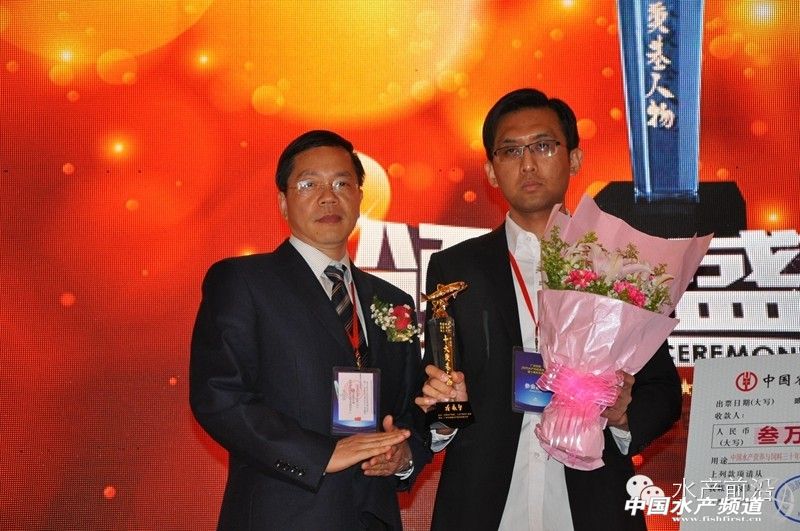 第六位獲得十大奠基人物的是劉茂生,由廣東恒興飼料實業(yè)股份有限公司董事長陳丹為他頒獎: