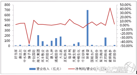 | 中國水產頻道原創報道,截至4月28日,23家飼漁上市企業陸續發布了2014年年度報告,其中主營業務含飼料的企業有12家,水產養殖企業5家,海洋捕撈企業2家,加工企業3家,生物酶制劑企業1家。23家企業分布在廣東(4家),湖南、遼寧(各3家),北京、浙江、山東、四川(各2家),廣西、新疆、上海、江西、安徽(各1家)。 2014年飼漁上市企業新增2家,為以生物酶制劑為主營業務的溢多利(2014年1月,深市)和以飼料為主營業務的禾豐牧業(2014年8月,滬市)。 (注:文中數據來源于各上市企業2014年年度報告) 營業收入百億元級別的企業 2014年,23家企業營業總收入1893.91億元,較上年增長6.5%。其中6家企業收入出現下滑,以珍珠加工為主營業務的千足珍珠下滑幅度達38.72%,其次是主營業務為飼料的正虹科技,下滑幅度為11.01%;其余17家企業的收入出現不同程度的增幅,以飼料為主營業務的唐人神、康達爾,收入增幅分別達41.41%、37%。12家飼料企業營業總收入達1783.64億元,占全部企業總收入的94%。 百億元以上級別的企業共6家,全部為飼料企業,分別為新希望(700.12億元)、海大集團(210.9億元)、大北農(184.45億元)、正邦科技(164.84億元)、通威股份(154.09億元)和唐人神(100.69億元)。營業收入最少的千足珍珠僅1.83億元。 凈利潤與營業收入的比值可以用來評估企業的盈利能力,23家企業中盈利能力最強的為壹橋海參,達到42.35%;飼料企業的盈利能力偏弱,該比值普遍在4%以內;有2家企業出現虧損,分別為獐子島和千足珍珠。 圖1 23家飼漁上市企業營業收入及盈利能力對比 總市值百億元級別的企業 根據2015年5月2日數據,23家企業總市值合計為2473.14億元,其中百億元以上級別的企業共7家,分別是新希望(468.9億元)、大北農(403.9億元)、海大集團(214.3億元)、中糧生化(152億元)、獐子島(125.7億元)、壹橋海參(108.7億元)、禾豐牧業(101.2億元)。 從數據來看,壹橋海參、千足珍珠較受資本市場青睞,總市值分別為營業收入的20倍、15倍。相比而言,飼料企業普遍不受資本市場追捧,總市值/營業收入的比值最高也僅為3倍(康達爾),甚至有多家飼料企業該項比值在0.57左右,如通威股份、正邦科技、唐人神等,價值遠被低估。 圖2 23家飼漁上市企業總市值分布及資本市場青睞程度對比(2015年5月2日數據) 46億元未收回 2014年,23家企業的應收賬款共計約46億元,比上年增加15.21%,與營業總收入的變化呈正相關,表明飼漁企業通過加大對客戶的資金支持,來拉動營業收入的增加。其中大北農的應收款最多,為6.15億元(上年為3.52億元),其次是國聯水產5.92億元(上年為5.55億元),以及海大集團4.96億元(上年為4.7億元)。 有8家企業的應收款金額同比下滑,但其中有3家是因為營業收入減少所致,另外5家如禾豐牧業、天康生物、新希望、壹橋海參和正邦科技,則是在營業收入同比增長的情況下,應收款同比下滑,說明這些企業對資金管控相對較嚴格或客戶回款能力較好(廠家加大回款力度)。 以加工出口為主營業務的國聯水產和百洋股份,應收款在總資產中的占比一值分別為21.55%和17.2%,遠高于其它企業,可能與國外采購商逾期支付貨款有關。 23家企業共有現金135.59億元,同比增長20.34%,手握10億元以上現金的企業共3家,分別是新希望(32.96億元)、大北農(26.14億元)、通威股份(14.33億元)。 圖3 23家飼漁上市企業應收賬款及應收賬款/總資產 大北農研發投入最多近5億 2014年,23家企業中有4家企業未公布研發投入費用,分別為大湖股份、東方海洋、開創國際和中水漁業。其余19家企業中研發投入超過1億元的有4家,分別為大北農(4.94億元)、海大集團(1.57億元)、通威股份(1.53億元)、正邦科技(1.13億元)。 好當家的人均工資最高 2014年,23家企業共聘用175970人,學歷以大專、高中及以下的群體為主。萬人以上規模的企業有新希望(63444人)、大北農(26951人)、正邦科技(14253人)、通威股份(12208人)、海大集團(10670人)等5家。 大北農、禾豐牧業、唐人神和天康生物等4家企業的銷售人員比重較大,分別占到各自企業員工數的60%、36%、40%和33%,其余19家企業都是生產人員的比重較大。 人均年薪超10萬元的企業共3家,分別為好當家(11.23萬元)、康達爾(10.57萬元)和中水漁業(10.1萬元);人均年薪最少的為百洋股份(4.14萬元)和壹橋海參(4.49萬元)。12家飼料企業中,人均年薪排序為:康達爾(10.57萬元)>海大集團(8.27萬元)>禾豐牧業(7.82萬元)>天邦股份(7.65萬元)>唐人神(7.45萬元)>通威股份(7.11萬元)>大北農(6.47萬元)>正虹科技(6.27萬元)>天康生物(6.12萬元)>中糧生化(5.86萬元)>新希望(5.81萬元)>正邦科技(4.92萬元) 圖4 23家飼漁上市企業在職員工及平均工資 新希望劉氏家族身價最高 2014年,23家企業董事長中男性為20名,女性3名。年齡分布上,30-39歲2人,40-49歲3人,50-59歲16人,60歲以上2人(百洋股份孫忠義61歲;好當家唐傳勤60歲)。其中,大湖水殖的羅訂坤(男,32歲),新希望的劉暢(女,35歲)為二代掌門人。除此之外,在企業中擔任高管的二代有壹橋海參的劉曉慶(27歲),與控股人劉德群為父女關系,目前擔任公司董事、銷售部經理,持股比例9.31%;千足珍珠的何飛勇(30歲),與控股人陳夏英為母子關系,目前擔任公司監事、外貿部經理,未持股;正邦科技的林峰(29歲),與控股人林印孫為父子關系,目前擔任公司總經理,未持股。而其余13家企業(除去5家國資企業)的二代尚未出現在高管名列。 23位董事長中有3人未公布薪酬,在已公布薪酬