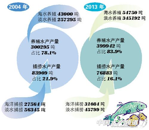 中國水產頻道報道,魚蝦等水產品是廣州人的餐桌最愛,早在1985年的《廣州研究》就曾報道當年廣州人“一年吃魚10萬噸”,人均消費鮮魚32千克,這些流向餐桌的魚類均來自于捕撈或養殖。不過,最近10年,廣州人餐桌上的捕撈類水產品已經越來越少,取而代之的是通過海水或淡水養殖的水產品。 數據顯示,2004年,廣州捕撈水產產量為83909噸,占當年廣州水產總量的21.9%。而到2013年,這一數字已減至76883噸,占當年廣州水產總量的16.1%,共減少7026噸,縮減幅度為8.4%。可以看出,2004年~2013年間,廣州的海洋捕撈水產雖然有所上升,但依托于江河、湖泊的淡水捕撈水產卻下降得厲害。 與之相對的是廣州養殖水產產量的劇增。2004年,廣州養殖水產產量為300295噸,占當年廣州水產總量的78.1%。而到了2013年,這一數字已經攀升至399942噸,占當年廣州水產總量的83.9%,增加99647噸,增加幅度為33.2%。可以看出,2004年~2013年間,廣州的海水與淡水養殖水產產量都有較大幅度增加。 上述情況說明,廣州人餐桌上吃到的魚類將越來越依靠人工養殖,而吃到自然水域生長的魚類的機會將越來越少。 |