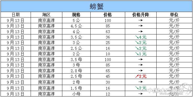 中國水產(chǎn)頻道獨(dú)家報(bào)道,據(jù)網(wǎng)友提供消息,2015年9月13日江蘇高淳河蟹價(jià)格行情如下: 南京高淳河蟹價(jià)格信息由南京康旭科技有限公司沈先生(電話:13770896772,網(wǎng)站:http://shop110368651.taobao.com)提供,由于價(jià)格波動(dòng)及訂貨量影響,以上價(jià)格為收購價(jià)格,實(shí)際價(jià)格請(qǐng)聯(lián)系電話。 【關(guān)鍵字】:河蟹價(jià)格 河蟹行情 河蟹塘頭價(jià) 。ㄖ袊水產(chǎn)頻道水產(chǎn)價(jià)格信息共享Q群:245296163,歡迎提供各種水產(chǎn)品一線價(jià)格信息。 |