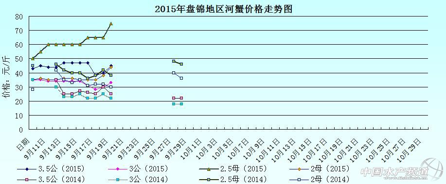 中國水產頻道獨家報道,據網友提供消息,2015年9月20日遼寧盤錦河蟹價格行情如下: