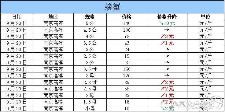摘要: 2015年9月20日江蘇高淳河蟹價格行情