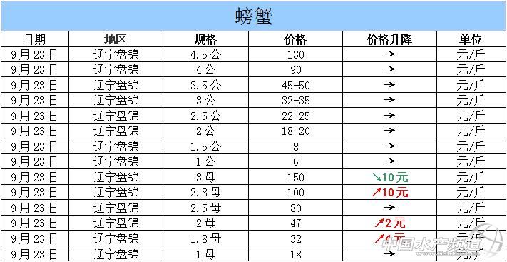 摘要: 2015年9月23日遼寧盤錦河蟹價格行情