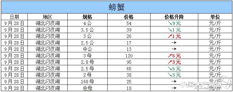 摘要: 2015年9月28日湖北汈汊湖主產區河蟹價格行情