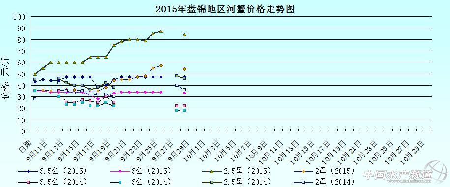 2015年9月29日遼寧盤錦河蟹價格行情