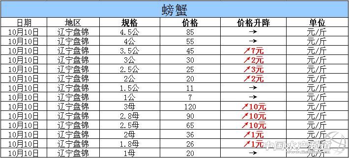 2015年10月10日遼寧盤錦河蟹價格行情