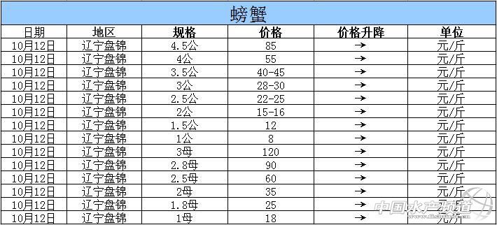 2015年10月12日遼寧盤錦河蟹價格行情