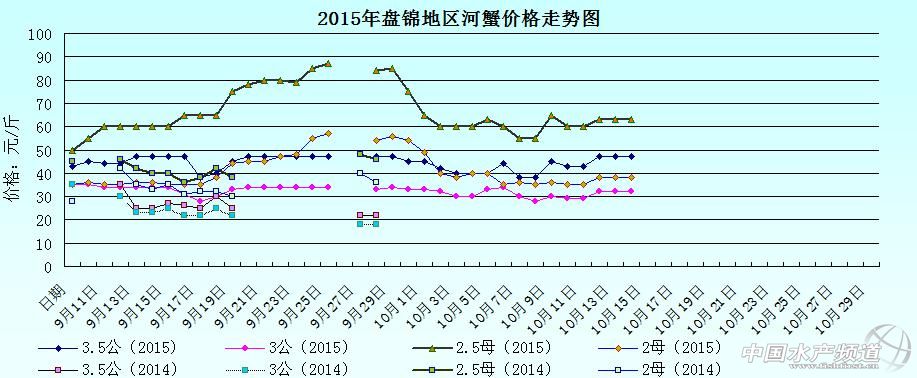 摘要: 2015年10月15日遼寧盤錦河蟹價格行情