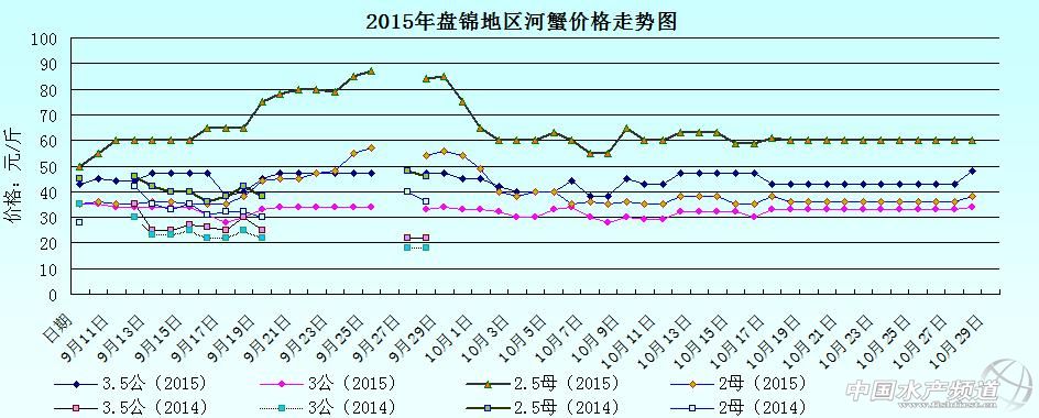 2015年10月29日遼寧盤錦河蟹價格行情