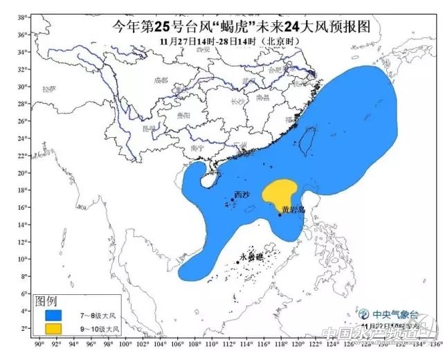 中國水產頻道報道,第25號臺風“蝎虎”今日生成,27日10時中央氣象臺繼續發布臺風黃色預警: