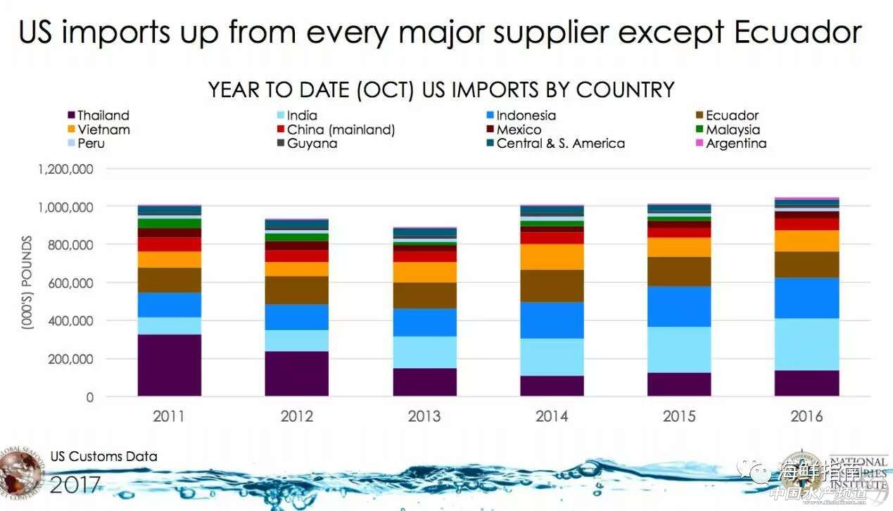 譯/ 海鮮指南(seafood-guide)胡路怡 來源/ UndercurrentNews 中國水產頻道報道,據海鮮指南翻譯,GSMC報告顯示2016年中國對蝦產量下降15萬噸,并預計2017年中國的對蝦產量或降至60萬噸。與此不同的是,全球水產養殖領袖展望峰會(GOAL 2016)的預計則認為未來一年中國對蝦產量或恢復至150萬噸。另外歐美國家外貿“去全球化”顯露苗頭,海鮮市場增添諸多不確定性。 由美國漁業協會(National Fisheries Institute, NFI)主辦的“2017全球海鮮市場會議(2017 Global Seafood Market Conference, GMSC)”于1月17日至19日在舊金山市舉辦。會議邀請了全球多個海鮮主產國的企業家、企業高管、政府官員、學者和銀行家,共同探討新一年全球海產品供應鏈與市場狀況,以及美國市場對海產品的消費趨勢。 歐美國家外貿“去全球化”顯露苗頭,2017年海鮮市場增添諸多不確定性 推崇“去全球化”和“地方保護主義”的美國新任總統特朗普將于1月20日正式就職,全球海鮮貿易企業普遍認為美國新政府的對外貿易政策將充滿不確定性。在2016年的競選宣言中,特朗普曾提及要從中國進口的產品中征收高額關稅。美國業內人士認為,假如特朗普就職后真的試圖改變現有規則,去兌現先前對選民的承諾,進出口商就不得不隨之改變商業模式,并承擔經濟風險。 另一方面,英國脫歐事件也意味著歐洲一體化進程的倒退。此次的“去全球化”趨勢對海產品的全球貿易影響極為顯著,海鮮產品的特殊屬性決定了它不同于其他動物蛋白,比如養雞行業,大部分產品均在本國消費,很少涉及國際進出口。 2016年美國人均消費的水產品較往年有所下降 美國海產集團(American Seafoods Group)報告顯示,2016年美國人均消費的水產品為15.1磅(6.85公斤),較2015年的15.5磅(7公斤)有所下降。于此同時,美國人對豬肉、雞肉和牛肉的消費水平保持穩定增長。 美國政府數據顯示,2015年全國海產品支出額接近1000億美元,2016年有望突破1000億。 2016年,美國三文魚供應下降2.05億磅(9.3萬噸),導致全年海產品整體供應的下降。而對蝦和鯰魚分別增長9,000噸和2.65萬噸。 數據顯示,2015年由美國出口至中國的動物蛋白中,80%以上為水產品。若中美開展貿易戰,水產品進出口將受到相當大的影響。 亞洲市場對蝦類產品的需求趕超美國 NFI數據顯示,近5內亞洲市場對于蝦類產品的需求量翻了一倍。美國依賴美元的穩定成為最具競爭力的買家。亞洲和南美洲的幾個主產國家(印度、印尼、厄瓜多爾、墨西哥)的貨幣經歷了不同程度的貶值,間接降低了原材料的價格。 2016年,43%的厄瓜多爾出口對蝦輸送至越南,同比增長11%。業內人士認為,亞洲(尤其是中國)需求將保持持續的增長,對國際蝦價的影響越來越大,已成為推動產業的新引擎。 荷蘭合作銀行預測,中國居民收入增長高于其他國家,對優質海產品的需求處于歷史最旺盛時期,這與國內水產資源的衰竭形成了反差。中國海產品貿易順差將減少,中國或成為最大海產品進口國。 中國對蝦產業依舊不容樂觀 GMSC數據顯示,大批量厄瓜多爾對蝦經由越南輸出至中國市場。2016年一月至九月,越南從厄瓜多爾進口對蝦20萬噸,而2015年全年共計17.5萬噸。據UndercurrentNews消息來源,大量對蝦被運至越南北部的海防市,最后以非正規渠道進入中國邊境,總計約27萬噸,相當于泰國全年的產量,而這部分非正規蝦產品的價值超10億美元。 “中國從全球購買的蝦產品中,五分之四可能是走私的。中國政府已意識到走私對蝦問題的嚴重性,正在努力完善進口標準,增強產品可追溯性,控制食品安全。而這正是行業需要的。”一位業內匿名人士說。 GSMC報告顯示2016年中國對蝦產量下降15萬噸,并預計2017年中國的對蝦產量或降至60萬噸,據了解NFI所使用的數據來源于中國飼料銷售額和政府報告。與此不同的是,全球水產養殖領袖展望峰會(GOAL 2016)的預計則認為未來一年中國對蝦產量或恢復至150萬噸。 南美白對蝦腸孢蟲病(Enterocytozoon hepatopenaei ,EHP)被認為是困擾當今養蝦業的最大難題,在泰國、越南和印度的養蝦場十分流行,嚴重程度已超過急性肝胰腺壞死癥(AHPND/EMS)。 泰國正大卜蜂集團高級副總裁Robins McIntosh認為,中國的蝦病問題依然嚴峻,“蝦農對于病害問題依舊沒有清晰的認識,盡管蝦價高,但不少蝦農還是選擇退出養蝦業。”全球對蝦產量增長的動力來自印度和厄瓜多爾等主產區,但病害問題依然不容小視。 【關鍵字】:對蝦 腸孢蟲病 對蝦養殖 |