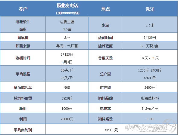 楊業友(右) 中國水產頻道報道,近兩年,廣西的對蝦養殖業經歷了一段非常低迷的時期,在大家都覺得養蝦業已經難有起色的時候,去年廣西合浦黨江鎮的早造蝦養殖來了個漂亮的大翻身,成功率高達70%,也就是說10個塘就有7個是盈利的,當地的楊業友便是其中的佼佼者。楊業友有十多年的養蝦經歷,接觸對蝦養殖行業多年來,養蝦連年報捷,是極為罕見的常勝將軍。去年的早造蝦養殖20畝土塘,11口塘100%成功,養殖時間80-100天,全是23-33頭/斤的大蝦,產量超3.3萬斤,總產值超100萬元,利潤60多萬元的驕人成績。 由于去年早造蝦的高成功率,早已是談蝦色變的黨江鎮,今年的養蝦熱潮將會再度被掀起,然而大家在興奮之余也應該冷靜地思考,我們到底做對了什么,又需要注意什么。今天,我們就走進楊業友的養蝦世界,在養殖環境日益惡劣的黨江,楊業友是如何用六大“致勝法寶”引領土塘養殖發展的新方向的。 表1楊業友養蝦的支出收益表 “另類”的蝦塘設計 楊業友的蝦塘設計在地勢略高的地面上,塘底與周邊蝦塘高度差在20-30cm,更有利于排污。此外,楊業友將蝦塘的面積改小,大小為1-4畝/口,呈正方形或略呈長方形,小面積池塘更有利于提高增氧效果和集污效果。黨江的池塘塘基較窄,土質是沙泥質,為了固塘保水,楊業友在塘邊鋪了黑膜。沙泥底質容易敗壞,為了給對蝦提供一個適宜的生長環境,楊業友還在原泥沙底的基礎上,進行塘底改良,鋪了一層約10cm厚的海沙,同時在池塘中間建造了“蝦廁所”用于集污和吸污。每一造收蝦后,楊業友都會及時地清洗、暴曬和平整塘底,“蝦是底棲動物,底好了成功率自然就高”楊業友介紹道。 黨江周邊沒有什么工業污染,并且很多養殖戶是抽地下水進行養殖,盡管地下水相比較外海水源安全,但在地下水污染越來越嚴重的今天,楊業友建議一定要標配蓄水塘,通過有效的對地下水進行曝氣、消毒后才能使用,確保養殖用水安全。“盡管塘租很貴,很多養殖戶不愿意騰出一些池塘作為蓄水池,現在看來風險是非常大的。配置蓄水池的成本雖然高了,但是養殖有保障,現在當務之急的是提高成功率,而不是大包大攬地爭高產。”楊業友笑著說。 精準的投養方案 楊業友告訴筆者,錯開養殖高峰期,是降低養殖風險的最有效辦法。因此,楊業友的第一造蝦選擇低溫、當地投苗極少的3月初進行。楊業友說,選擇此時投苗有幾個優勢,首先,水溫較低時,養殖人群少,海水經過一個冬天的凈化,海區的水質更好;其次,由于溫度低,周邊放苗的人少,相互感染病害的機率自然就少;最后,這個時期苗產供應充足,種質也是最有保證的時期,幾個重要條件結合起來會使得養殖的成功率更高。 當然,投苗早的另一個重要優勢便是能提早上市,3月初投投,5月底即可出蝦,錯開出蝦高峰期,在市場上青黃不接的暑假容易獲得更理想的溢價。因此,同規格的蝦,楊業友賣價往往能高出3-4元/斤,“會養不如會賣”在楊業友身上體現得淋漓盡致。 獨特的護底設施 投苗早帶來的弊端是水溫低、生長緩、成活率,楊業友對此有自己獨特的解決方法——管道保溫。低溫時期,采取抽取地下溫暖井水的方式,通過底部管道輸送方式,達到底部保溫的目的,此舉措讓楊業友的蝦成活率普遍高達9成以上,而周邊傳統養殖戶多在5-6成。 “蝦廁所”的設計 塘底差、排污困難是導致黨江成功率連年低下的一個頑癥。楊業友的獨門武器是“硬底排污溝+吸污處理。”將中央排污溝硬化處理,視養殖情況每天用強力吸污泵吸污1-2次,為避免吸到蝦,吸污安排在剛喂完料后進行。 高度信賴大品牌產品 近幾年蝦苗質量參差不齊,著實讓蝦農們感到迷茫,但是在楊業友這里選苗卻顯得比較簡單。楊業友對選苗極為重視,一直堅信和選擇大品牌蝦苗,也不會為了盲目追求高產而進行高密度養殖,而是根據蝦塘實際情況和多年養殖經驗進行投苗,設計投苗密度為5萬-6萬尾/畝。 楊業友(右)對選苗極為重視 有些養殖戶認為土塘養殖有浮游生物的補充,不需要質量太好或蛋白含量太高的飼料,但楊業友卻認為,即使是土塘養殖,飼料質量也極為重要。經多次養殖效果對比,他始終堅信和選擇某大廠家的高蛋白草蝦料。“特別是在早造苗養殖中,水溫低,天氣不穩定,高蛋白的草蝦料能明顯提高生長速度,使得蝦價更有競力,此外,高蛋白的草蝦料也能提高對蝦的免疫力,從而提高耐低溫的能力,從而保證蝦苗的高成活率,使得蝦更健壯、生長更快。” 極致的管理 充足的配套設施是楊業友成功的重要保證,科學的電路設計系統,充足的發電設備讓他底氣十足,夜晚不再失眠。其中最大的特點是增氧設施的極致利用,除了每畝標配1臺氧機外,楊業友在養殖過程中全程開啟增氧機,前期交替開啟,中后期24小時開啟已成常態,高配的裝備讓對蝦養殖常見的缺氧、軟殼偷死基本與他無緣。 水源差、換水難是造成近幾年黨江養蝦成功率低的重要原因。相當部分養戶就因此倒在了最為關鍵的40-50日齡上,但是在楊業友這里卻顯得得心應手。楊業友的調水心得體會是——清水投苗。在池塘分別潑灑漂白粉、石灰水后,一次性進足60cm的水(鹽度2-3格),此后,楊業友即不消毒也不施肥,只是連開增氧機曝氣數天后,最后拿苗回來試水,成活率達到9成以上即可以投苗了。 在投喂方面,楊業友采取的是足料投喂的方式。投苗后第2天即開始喂料,并不像有些養殖戶