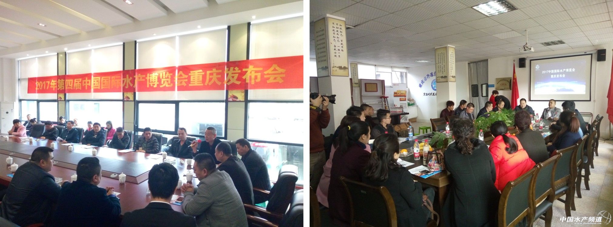中國水產(chǎn)頻道獨家報道,中國國際水產(chǎn)博覽會是中國水產(chǎn)界的一大盛會,以“走出去、請進(jìn)來”的策略,增強(qiáng)水產(chǎn)博覽會與市場、商家的互動。3月22日下午,中國國際水產(chǎn)博覽會組委會的工作小組在中華全國工商業(yè)聯(lián)合會水產(chǎn)業(yè)商會常務(wù)副會長龐朝暉先生的帶領(lǐng)下分別在重慶明品福冷凍交易市場,重慶陳家壩萬噸凍品交易市場成功的舉辦了“2017第四屆中國國際水產(chǎn)博覽會重慶發(fā)布會”,會上中國國際水產(chǎn)博覽會組委會工作人員就水博會的工作作了詳細(xì)的講解與宣傳,為2017水博會的路演再添一抹美麗的色彩。 |
