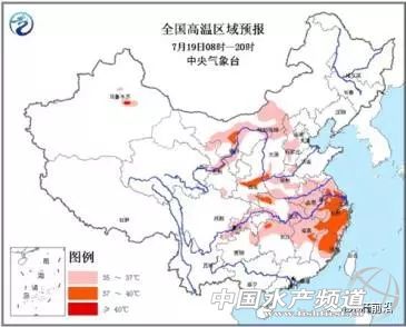 溫馨提示 中國天氣網訊中央氣象臺7月19日06時繼續發布高溫黃色預警: 預計,7月19日白天,內蒙古中西部、寧夏北部、河北中部、黃淮西部和南部、陜西關中地區、江漢北部、江淮、江南東部和北部、重慶等地有35℃以上的高溫天氣,其中,內蒙古中部、陜西關中地區、江蘇南部、浙江、福建等地的部分地區最高氣溫可達37~39℃,局地可超過40℃。 據以上高溫黃色預警顯示,浙江大部、江蘇部分地區今天出現37-40℃的高溫天氣,小編在此提醒浙江、江蘇等地養殖加州鱸的朋友:高溫天氣,出魚謹防高溫應激,養殖需加強警惕,盡量提高水深,適時減料。(高溫預警信息來源:中國天氣網) |