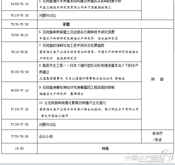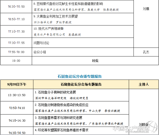 中國水產頻道報道, 第八屆全國石斑魚類繁育與養殖產業化論壇 中國水產流通與加工協會石斑魚分會成立大會 第二屆魚類工業化養殖學術研討會 會 議 指 南 2017年9月•青島&萊州 會議簡介 當前,我國魚類養殖產業正處于全面推進供給側結構性改革,加快轉方式調結構步伐,促進產業轉型升級的發展新階段。面對新形勢、新任務、新機遇和新挑戰,中國水產學會魚類工業化養殖研究會將秉承雷霽霖院士“建樹國際視野、突出國家觀念、集成系統工程、構筑高端產業”的指導理念,在政、產、學、研的共同參與下,深入開展魚類工業化養殖科技、產業、經濟、文化等領域的理論、學術和戰略研究。通過學術研討等系列活動,加強產學研的技術交流和務實合作,夯實工業化養殖基礎,以促進我國魚類工業化養殖大產業的快速發展。 石斑魚養殖是我國海水魚類養殖的重要產業之一,年養殖產量超過10萬噸,產值接近百億元。在保障優質水產品有效供給、增加就業及拉動沿海經濟發展等方面發揮著重要的作用。2017年,石斑魚被正式納入國家海水魚產業技術體系建設,同時,中國水產流通與加工協會石斑魚分會應時成立,這標志著我國的石斑魚養殖產業將步入技術支撐有體系,行業規范有協會的全新發展快車道。為此,本屆“全國石斑魚類繁育與養殖產業化論壇”將在前七屆的基礎上,為從事石斑魚類研究的專家學者及業界人士提供更廣泛的交流互動平臺,分享成果與經驗、碰撞思想和理念,探索產業發展良策,研討行業組織化與規范化建設,以推動我國石斑魚產業持續健康發展。 主辦單位 農業部海洋漁業可持續發展重點實驗室 中山大學 中國水產流通與加工協會 承辦單位 中國水產科學研究院黃海水產研究所 萊州明波水產有限公司 中國水產流通與加工協會石斑魚分會 協辦單位 中國水產學會魚類工業化養殖研究會 國家海水魚產業技術體系 特別贊助單位 三通生物工程(濰坊)有限公司 深度合作媒體 《水產前沿》雜志 贊助單位 愛樂水產(青島)有限公司 海南晨海水產有限公司 青島賽格林生物工程有限公司 嘉吉飼料(鎮江)有限公司 大北農神爽水產科技集團 一、會議時間 2017年9月20日(9月19日報到,9月20日全天會議,21日觀摩明波水產石斑魚繁育與循環水養殖基地) 二、會議地點 青島鑫江·溫德姆酒店 三、會議日程 會 議 須 知 一、 請參會代表佩戴會議代表證出入住所、會場、餐廳和其他活動場所。 二、 請參會代表提前10分鐘進入會場,會議期間將手機調至震動或靜音模式。 三、交通指南 會議酒店:青島鑫江•溫德姆酒店 具體地址:中國山東省青島市城陽區黑龍江中路220號,距離青島流亭機場15分鐘車程。 四、會議用餐安排 早餐: 參會代表憑房卡就餐。 午餐: 9月19日12:00-13:20 午餐漢江韓國料理 9月20日12:00-13:20 自助午餐華潤廳 晚餐: 9月19日18:10-21:30 自助晚餐水青咖啡苑 9月20日19:00-21:30 晚宴鑫江多功能廳 五、會務組聯系方式 陳超:13905328672 徐永江:15192719852 梁友:13589887779 毛東亮:13854519900 王曉梅:13954583302 林好蔚:13562525550 李文升:18753565597 王琳:15266213657 馮妍:13911710019 在青島,我們熱誠歡迎您的到來! |