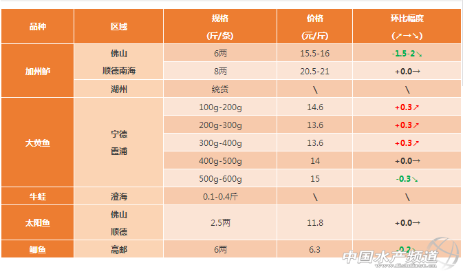 2017年9月9日加州鱸/大黃魚/鯽魚等價格行情
