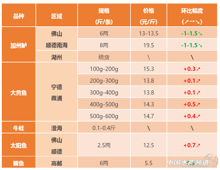 2017年9月23日加州鱸、大黃魚、鯽魚塘頭價格行情分析