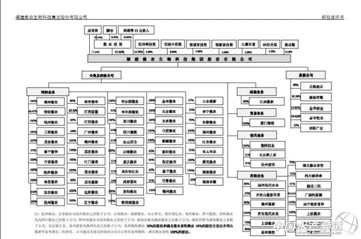 中國水產頻道獨家報道, 僅6年就推到上市,厲害! 文/ 水產前沿 唐東東 9月26日,福建傲農生物科技集團股份有限公司(簡稱“傲農生物”)在上海證券交易所上市,發行股份總量6000萬股,占發行后總股本的14.29%。募集資金主要用于投資建設6個項目及補充流動資金,其中包括3個新建(擴建)飼料生產項目、1個研發中心項目、1個信息化建設項目,1個原種豬核心育種場項目;項目建成后,公司的飼料產能將從2016年的192.39萬噸擴大到276.39萬噸,增幅為43.66%。 據了解,傲農生物的前身福建傲農生物科技有限公司成立于2011年4月,主營業務包括飼料、生豬養殖、獸藥動保、原料貿易等核心產業,并搭建了豬OK豬場管理信息化系統,以下游客戶養殖數據為基礎,協助下游客戶獲取銀行融資支持等全方位服務。其中飼料業務收入超過營業收入的90%,為公司主營業務。2014-2016年,傲農生物的飼料總銷量分別為106.58萬噸、109.2萬噸、144.57萬噸,其中豬料銷量分別為106.58萬噸、106.64萬噸、138.82萬噸。以2016年的飼料銷量數據來看,約占全國飼料總產量的0.69%,在全國7000余家飼料企業中位居第19位。其中:豬飼料占全國豬飼料產量的1.59%,位居全國同類產品前10位;豬用預混合飼料產量7.80萬噸,位居全國同類產品前5位。 截至2017年6月30日,傲農生物擁有71家控股子公司及5家參股公司,業務覆蓋全國。其中,從事飼料業務、養殖業務、動保業務、貿易業務、信息業務的控股子公司分別為52家(包含銷售公司)、14家、1家、1家、3家;參股公司中有2家從事飼料業務,3家從事養殖業務。控股的52家飼料相關業務企業中,目前盈利能力最強的主要是南昌傲農、漳州傲農、廣州傲農和金華傲農。 傲農生物董事長、總經理吳有林 傲農生物董事長、總經理為1978年出生的吳有林,曾任職于大北農集團福建事業部。其直接持有傲農生物17.44%的股權,并通過其持股55.64%的傲農投資間接控制傲農生物47.44%的股權,以直接和間接方式合計控制公司64.88%的表決權,為公司的實際控制人。同時,公司還有核心團隊和中層干部團隊共190余人直接或間接持有公司股份。 福建傲農生物科技集團框架結構(點擊看大圖) 以發行價4.79元/股計算,持15780.23萬股的吳有林,其身家達到7.6億元,并造就了13名千萬級身家的高管。截至9月26日中午12點,傲農生物股價增幅44.05%至6.9元/股漲停,總市值達到29億元,吳有林的身家由此攀升至10.89億元。 |