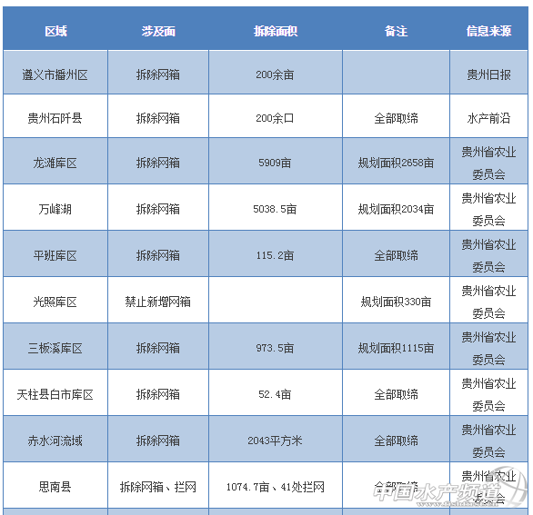 中國水產(chǎn)頻道獨(dú)家報(bào)道, 文/ 水產(chǎn)前沿 何鴻浩 網(wǎng)箱拆除只是一個(gè)縮影,這場環(huán)保運(yùn)動(dòng)勢(shì)必會(huì)影響到整個(gè)水產(chǎn)業(yè)的轉(zhuǎn)型走向以及速度 2017年是環(huán)保督查最嚴(yán)厲的一年,全國各地江河庫區(qū)網(wǎng)箱養(yǎng)魚遭到重創(chuàng),一批批網(wǎng)箱被快速拆除,燃煤鍋爐養(yǎng)殖被禁,溫室龜鱉被取締,以后養(yǎng)殖戶進(jìn)行養(yǎng)殖必須要8證齊全,缺一被罰。今年,種種爆炸性信息一波波沖擊,業(yè)界中嘩然一片,尤其是養(yǎng)殖戶迷惘于未來將何去何從? 其中,養(yǎng)殖網(wǎng)箱是近幾年重點(diǎn)關(guān)注對(duì)象,無證養(yǎng)殖網(wǎng)箱與違法新增網(wǎng)箱都被依法拆除。同時(shí),各省為保證水資源安全并治理水域環(huán)境問題,對(duì)不少區(qū)域進(jìn)行了重新規(guī)劃,部分網(wǎng)箱也因此被要求撤除。大勢(shì)所趨,網(wǎng)箱拆除只是一個(gè)縮影,這場環(huán)保運(yùn)動(dòng)勢(shì)必會(huì)影響到整個(gè)水產(chǎn)業(yè)的轉(zhuǎn)型走向以及速度,其影響將涉及飼料、種苗、流通等各個(gè)領(lǐng)域。筆者整理了近兩年部分關(guān)于圍欄、攔網(wǎng)、網(wǎng)箱拆除、大水面勸退的相關(guān)信息以及今年關(guān)于水污染防治規(guī)劃的相關(guān)條例以供讀者們參考,細(xì)看這些區(qū)域少了多少養(yǎng)殖面積?將來,產(chǎn)業(yè)又將如何發(fā)展? 全國多個(gè)省份拆除行動(dòng) 貴州省 貴州省在6個(gè)庫區(qū)10個(gè)縣(市、區(qū))均開展網(wǎng)箱養(yǎng)殖,涉及網(wǎng)箱養(yǎng)殖戶2742戶(珠江流域1914戶,清水江流域828戶),網(wǎng)箱養(yǎng)殖面積達(dá)17981.7畝(約1.8萬畝)。到2017年底,珠江、清水江各庫區(qū)網(wǎng)箱養(yǎng)殖面積減少至6361.9畝以內(nèi),其中不投餌生態(tài)網(wǎng)箱面積4996.6畝,投餌網(wǎng)箱養(yǎng)殖面積1365.3畝。同時(shí)在烏江干流庫區(qū),擬拆除446戶、72.3萬平方米的網(wǎng)箱,以保證庫區(qū)安全。(貴州省農(nóng)業(yè)委員會(huì)) 湖北省 湖北省全省122萬畝圍欄圍網(wǎng)網(wǎng)箱拆除工作已完成96.2%,27.45萬畝投肥(糞)養(yǎng)殖已全部取締;4.5萬畝珍珠養(yǎng)殖已全部取締。全省7個(gè)省級(jí)以上保護(hù)區(qū)對(duì)照問題清單積極推進(jìn)整改。目前,水生生物保護(hù)區(qū)禁捕工作已經(jīng)全面部署。(湖北省水產(chǎn)局) 湖南省 湖南省部署啟動(dòng)對(duì)全省涉及18個(gè)縣(市、區(qū))的10座大型水庫養(yǎng)殖污染的治理攻堅(jiān),治理重點(diǎn)為岸上畜禽規(guī)模養(yǎng)殖場(戶)退養(yǎng)和水庫人工投餌網(wǎng)箱、人工投餌圍欄退養(yǎng)。列入“退養(yǎng)”的大型水庫,包括3座飲用水源水庫,分別是水府廟、鐵山、官莊水庫;7座非飲用水源水庫,分別是柘溪、五強(qiáng)溪、皂市、蟒塘溪、托口、江埡、黃石水庫。飲用水源水庫禁止水產(chǎn)人工養(yǎng)殖,非飲用水源水庫科學(xué)規(guī)劃養(yǎng)殖。據(jù)測算,全省大型水庫需退養(yǎng)畜禽規(guī)模養(yǎng)殖面積53.2萬平方米、攔網(wǎng)86.9萬平方米、網(wǎng)箱98萬平方米。(中國環(huán)保信息網(wǎng)) 四川省 四川省人民政府辦公廳表示,到2020年,全省水產(chǎn)養(yǎng)殖區(qū)域布局更加優(yōu)化,養(yǎng)殖面積達(dá)到25萬公頃,稻漁綜合種養(yǎng)面積達(dá)到20萬公頃,水產(chǎn)品總產(chǎn)量達(dá)到180萬噸。全省漁業(yè)經(jīng)濟(jì)總產(chǎn)值達(dá)到560億元,產(chǎn)業(yè)結(jié)構(gòu)進(jìn)一步調(diào)整,涉漁一二三產(chǎn)業(yè)比例調(diào)整為6∶1∶3。全省農(nóng)民人均漁業(yè)收入達(dá)到840元以上;漁民人均純收入達(dá)到21550元,比2010年翻一番以上。省、市(州)、縣(市、區(qū))質(zhì)檢體系更加健全,水產(chǎn)品產(chǎn)地抽檢合格率穩(wěn)定在98%以上。建立2個(gè)省級(jí)水生生物自然保護(hù)區(qū);力爭創(chuàng)建7個(gè)國家級(jí)水產(chǎn)種質(zhì)資源保護(hù)區(qū),建立4個(gè)省級(jí)水產(chǎn)種質(zhì)資源保護(hù)區(qū)。建設(shè)增殖放流站和馴養(yǎng)救護(hù)中心10個(gè),年均增殖放流苗種1億尾以上。建設(shè)內(nèi)陸漁港5個(gè),捕撈漁船數(shù)控制在1.15萬艘以內(nèi),總功率不超過4.9萬千瓦。(四川省人民政府網(wǎng)站) 廣西壯族自治區(qū) 福建省 河南省 廣東省 東莞市海洋與漁業(yè)局表示,《東莞市東江流域供水通道敏感區(qū)域禁止養(yǎng)殖區(qū)和限制養(yǎng)殖區(qū)劃定方案》對(duì)東江流域劃定了水產(chǎn)養(yǎng)殖禁養(yǎng)區(qū)范圍和水產(chǎn)養(yǎng)殖限養(yǎng)區(qū)范圍。將東江流域飲用水源一級(jí)水源保護(hù)區(qū)范圍(包括水域和陸域)劃定為水產(chǎn)養(yǎng)殖禁養(yǎng)區(qū)范圍,將東江流域飲用水源二級(jí)水源保護(hù)區(qū)和準(zhǔn)保護(hù)區(qū)范圍(包括水域和陸域)劃定為水產(chǎn)養(yǎng)殖限養(yǎng)區(qū)范圍。水產(chǎn)養(yǎng)殖禁養(yǎng)區(qū)水域范圍內(nèi)的水產(chǎn)養(yǎng)殖活動(dòng),應(yīng)當(dāng)于2017年12月31日前停止養(yǎng)殖活動(dòng)或拆除設(shè)施。(廣東省農(nóng)業(yè)廳) 海南省 海南省?诮稙楸Wo(hù)水質(zhì)、落實(shí)海岸帶陸域水產(chǎn)養(yǎng)殖行業(yè)環(huán)保措施。市生態(tài)環(huán)保局組織部署全市開展水產(c