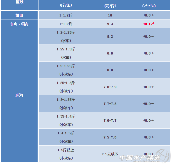 中國(guó)水產(chǎn)頻道獨(dú)家報(bào)道, 文/粵海飼料集團(tuán)、水產(chǎn)前沿 彭曉君 海鱸 福建莆田、東山、詔安區(qū)域:鱸魚養(yǎng)殖目前均已達(dá)到上市規(guī)格,隨著鱸魚成魚量的增加,市場(chǎng)價(jià)格低迷,養(yǎng)戶仍處于觀望中,出魚量少。 廣東珠海區(qū)域:(1)魚價(jià)持續(xù)平穩(wěn),養(yǎng)殖戶出魚利潤(rùn)基本持平或養(yǎng)殖技術(shù)差的個(gè)體出現(xiàn)虧本,理性出魚;(2)市場(chǎng)需求回歸理性,不追求大魚抓,部分魚中回歸到規(guī)格1.2~1.3斤鱸魚,并存在抬價(jià)因素,導(dǎo)致分規(guī)格抓魚;(3)市場(chǎng)存在頭批魚延遲銷售的部分群體,養(yǎng)殖規(guī)格1.5斤以上鱸魚待價(jià),導(dǎo)致后期鱸魚價(jià)格難以商鞅;(4)魚中市場(chǎng)競(jìng)爭(zhēng)持續(xù),為客戶謀利益才能得人心,養(yǎng)殖戶有錢賺才跟魚中用料,鱸魚苗已經(jīng)陸續(xù)放苗,魚中看中養(yǎng)殖戶轉(zhuǎn)料空隙,穩(wěn)定市場(chǎng)。 病害:成品魚:冬季溫度波動(dòng)幅度大,水霉病開始泛濫,水溫合適真菌繁殖,存在交叉感染情況,建議:粵海金碘+五蓓子消毒預(yù)防,有發(fā)病魚塘可連續(xù)用3~5次。 魚苗:白蕉鱸魚苗開始放排,苗期注意PH波動(dòng),規(guī)格2.1~2.5cm,價(jià)格1.35毛~1.9毛/條,初步估計(jì)白蕉鱸魚放苗0.8億尾,部分大養(yǎng)殖場(chǎng)目前還沒有放苗。 【關(guān)鍵字】:海鱸 價(jià)格 水產(chǎn)養(yǎng)殖 |