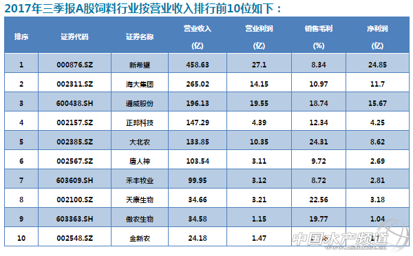 中國水產頻道獨家報道, 2017年前三季度,營業收入和營業利潤均最高的是新希望;營業收入同比增長最多的是海大;營業利潤和利潤總額同比增長最快的是通威。你最看好誰? A股飼料行業2017年三季報披露公司共15家,實現盈利14家,虧損1家,總營業收入1553.55億,總營業利潤90.82億,行業營業利潤/營業總營收=5.85%。其中 營業收入前五位分別為: 新希望(000876)458.63億 海大集團(002311)265.02億 通威股份(600438)196.13億 正邦科技(002157)147.29億 大北農(002385)133.85億。 營業利潤前五位分別為: 新希望(000876)27.10億 通威股份(600438)19.55億 海大集團(002311)14.15億 大北農(002385)10.35億 正邦科技(002157)4.39億。 行業總營業收入同比增長14.48%,總營業利潤同比增長12.83%。營業收入前5位企業占行業總營收77.30%,營業利潤前5位企業占行業總利潤83.16%。 虧損企業主要有康達爾(000048)。 (數據來源:前瞻眼) 飼料行業營業收入排行前10位企業同比增長情況如下: (數據來源:前瞻眼) 2017年三季報飼料行業虧損企業名單如下: (數據來源:前瞻眼) |