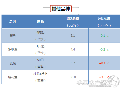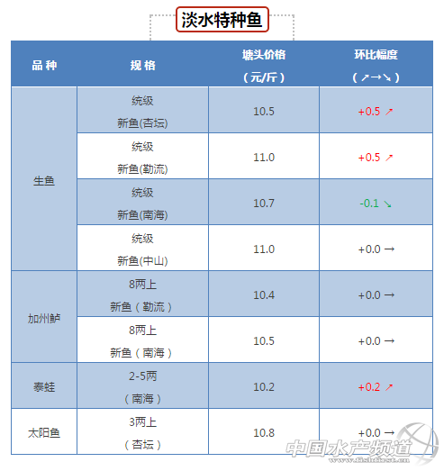中國水產頻道獨家報道, 鱸魚級魚需求大,存塘偏少,繼續保持高位 鱸魚:鱸魚級魚需求大,存塘偏少,繼續保持高位,后市看好!鱸魚中大魚需求與存塘保持穩定,大魚價格微漲,后市看穩! 立魚:價格受珠海小林市場出頭批魚的影響,魚價同比半月前跌一塊。 盲曹:價格預期穩定。 黃花級:黃花級魚價格微跌1毛,大魚目前仍然價格低迷。 |